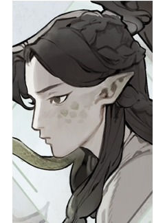 he swore his life to tianlang-jun and nothing can convince him to betray his lord. he's able to freely change between a snake form, half-human half-snake form and a completely human appearing form, though, he mostly switches between human and half for convenience reasons.